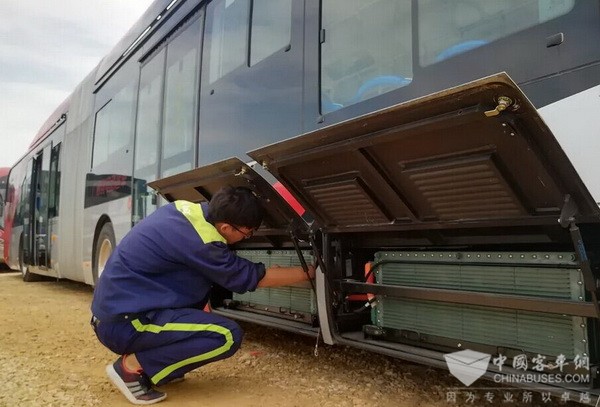 在航展开幕前,珠海公交集团与银隆新能源共同成立专业服务保障小组,针对航展工作人员进行相关培训,对航展摆渡巴士进行预防性维修检查。