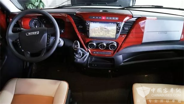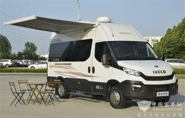 该车是基于进口依维柯New Daily为基础平台研发的一款高端B型房车产品。外形方面保持了商务车的风格,采用极简的设计,黑白双色的搭配,简约而又彰显格调,红色的车身彩贴画龙点睛,让整车更为大气。