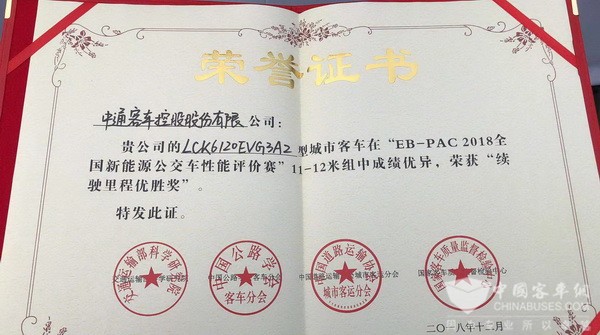 捷报频传| 中通客车获2018全国新能源公交性能评价赛两项大奖