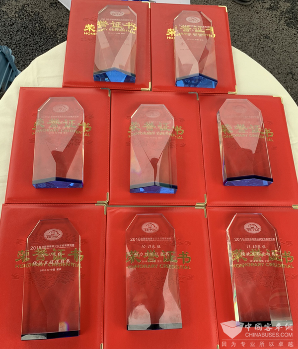 2018年12月1日,在重庆举办的“EB-PAC 2018全国新能源公交车性能评价赛”(以下简称“性能评价赛”)结果揭晓,宇通ZK6105BEVG59和ZK6125BEVG59E两款参赛车型,分别获得10-11米组和11-12米组的“全能奖”、“节能优胜奖”、“续驶里程优胜奖”、“动力性能优胜奖”共8项大奖,囊括了此次性能评价赛设置的所有8个组别的奖项,实现“大满贯”。其中,含金量最高的两项大奖——10-11米组和11-12米组的“全能奖”,更被宇通独揽。