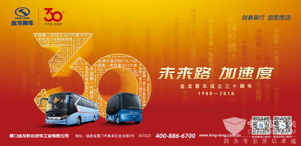 1988年创立至今,30年筚路蓝缕、砥砺奋进,厦门金龙联合汽车工业有限公司(以下简称:金龙客车)在客车自主品牌的向上之路上矢志不渝、创新前行,屡屡以技术迭代与产品创新影响着行业变革,创造了客车自主品牌崛起的新高度。
