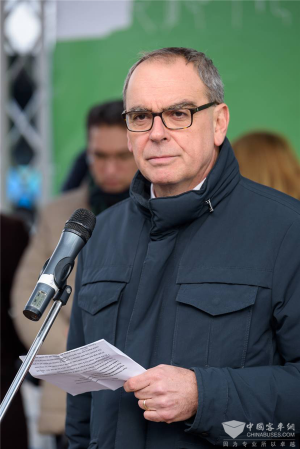 索菲亚市市长Jordanka Fandakova在启用仪式上发言:“索菲亚市在经过了几年的不同技术测试之后,最终选择了中国郑州宇通生产的纯电动客车。这些车辆不仅电耗很低,而且在舒适性上也表现出色。这20台纯电动客车投运后,将在索菲亚市内的9路和309路两条公交线路上运营。”