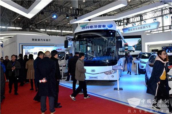 本次展出的安凯8.5米氢燃料电池客车,是安凯潜心研发的第三代氢燃料电池客车。该车基于全承载结构平台打造,其燃料电池系统具有高度集成的定制式设计、优化的系统匹配和极简的系统架构设计等优势,整车在动力性、经济性、舒适性上可实现协调平衡,是打造创新、绿色、和谐、协调发展理念城市的最好载体。