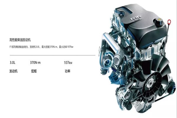全新一代依维柯·欧胜搭载,F1系列高效铂金动力。最大功率为107KW,最大扭矩可达370N.m。BOSCH新一代超高压共轨电控喷油系统,动力强劲,足以应对各类路况。