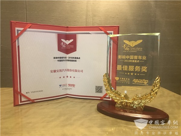 “中国客车行业最佳服务奖“:安凯客车