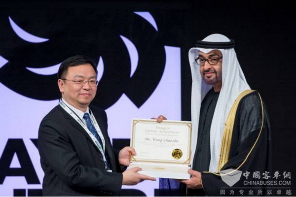 此前,因在电动车、太阳能、储能等领域的贡献,王传福曾在2014年荣获“扎耶德未来能源奖”个人终身成就奖,又在2016年带领比亚迪斩获“扎耶德未来能源奖”大型企业奖,比亚迪成为全球唯一一家包揽该奖项大型企业类奖和个人终身成就奖的企业。