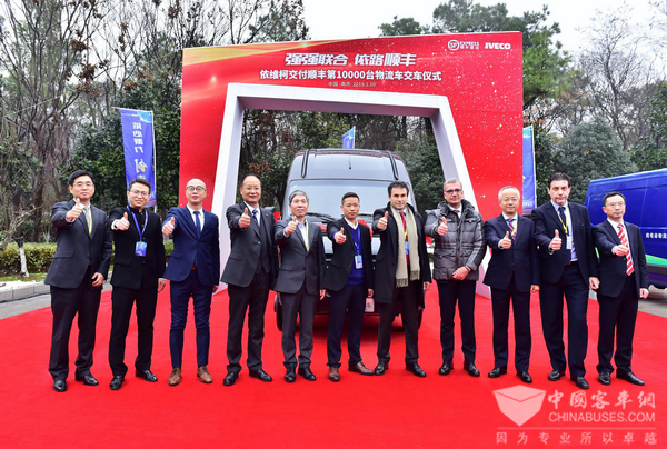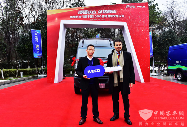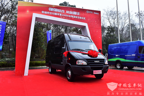 2019年1月,以“强强联合 依路顺丰”为主题的南京依维柯交付顺丰第10000台物流车交车仪式在南京举行。顺丰速运与南京依维柯早在2004年便展开合作,15年间,南京依维柯先后向顺丰速运交付各类物流专用车、冷藏车、新能源物流车共计10000台,投入到城市配送、医药运输、末端配送等细分领域。