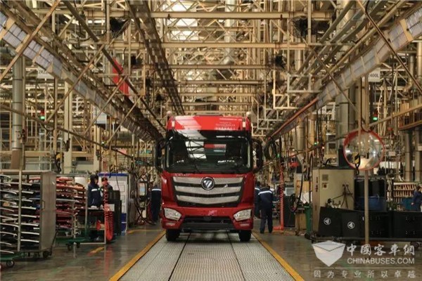 新年开工后生产线上即将下线的欧曼EST超级重卡