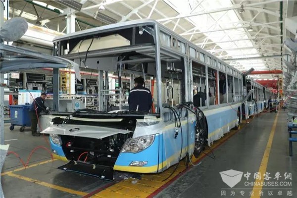 欧辉客车北京工厂生产线工人们积极有序生产为“开门红”全力以赴