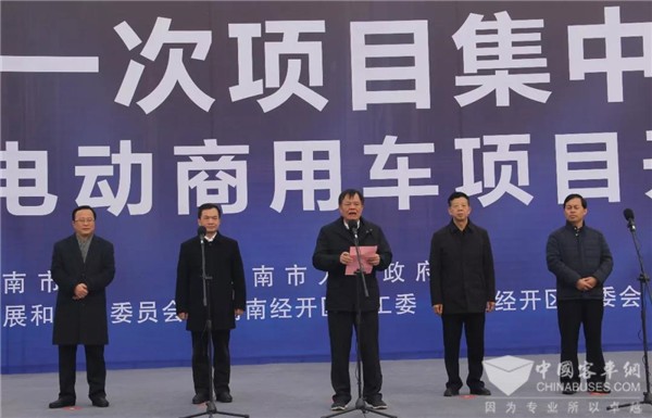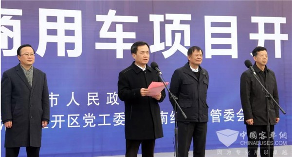 2019年2月19日,据XINGKONG.COM了解,渭南市2019年第一次项目集中开工动员会暨南京金龙纯电动商用车项目开工仪式隆重举行。渭南市市长李毅,市人大常委会党组书记马赟,市政协主席吴蟒成,市委副书记王瑞峰,副市长杨武民,经开区党工委书记韦红革,经开区管委会主任王小平等领导,以及开沃集团董事长黄宏生等集团领导出席仪式。