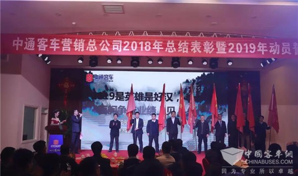 2018年,中通客车全体营销人员在各个市场全线出击,虎口夺单,取得了卓越的成绩。以饱满的激情总结2018,以昂扬的斗志迎接2019!2月10日,农历大年初六,中通客车营销总公司召开2018年总结表彰大会暨2019年动员誓师大会。