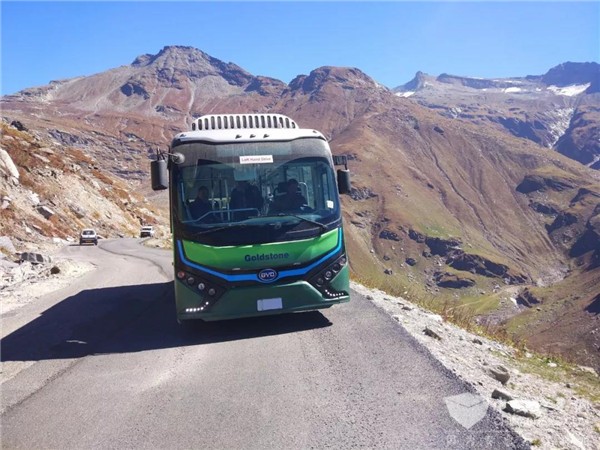 比亚迪纯电动巴士运行在喜马偕尔邦高海拔路段