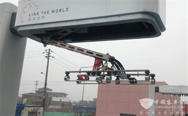 对此,唐国华介绍:“以微宏快充电池为应用前提,智能下压式充电弓充电倍率高、操作便捷。更为值得一提的是,与普通充电桩相比,智能充电弓没有沉重的充电电缆和枪头,无需司机下车进行插拔枪操作,只需将公交车停到相应位置,通过车内控制屏,充电手臂将自动对接充电,彻底解决了环境因素、操作流程对充电效率的干扰。”