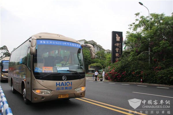 首汽集团海南公司中标博鳌亚洲论坛安保人员服务用车项目,也是派出了金旅客车。