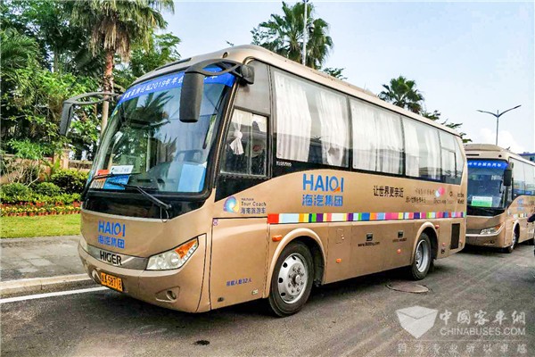 为了圆满保障2019博鳌亚洲论坛的交通运输,今年共有180余辆大中型客车选入服务保障用车,负责参会代表的往来通勤。作为博鳌亚洲论坛交通服务保障指定单位,海汽运输集团股份有限公司旅游客运分公司(简称“海汽旅游公司”)今年共有130辆大中型客车参与交通服务保障工作,其中,海格客车约有50辆高端旅游客车入选服务保障用车,占海汽旅游公司服务车辆的近四成。