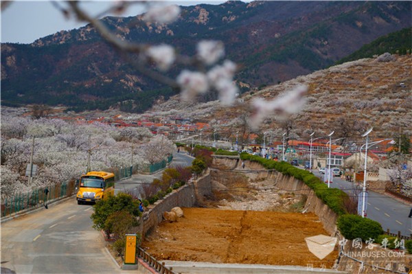 随着春季的到来,青岛城阳区东部山区的杏花、梨花、桃花、樱桃花等次第开放,整个山区迎来一年一度的花海盛景。每天,亮黄色的中通“大鼻子”校车,一早一晚穿梭在山色(shuǐ)峪、棉花社区的山路上,与花海交相辉映,成为了山村最美的风景之一。