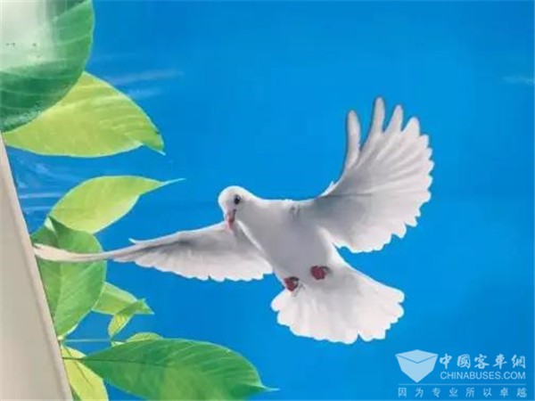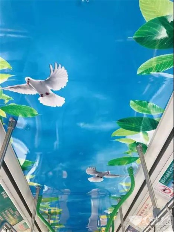 伸手就能摸到的“蓝天白云”,在这些三门公交的车厢内,首先可以看见一片蓝天白云,以及空中飞翔的白鸽。