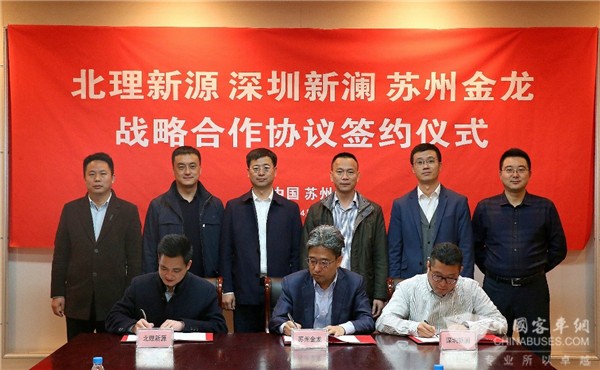 苏州金龙党委书记、董事长陈笃廉,副总经理徐建忠,总工程师李春,北理新源董事长王震坡,总经理龙超华,深圳新澜董事长王杰钢等领导出席签约仪式。