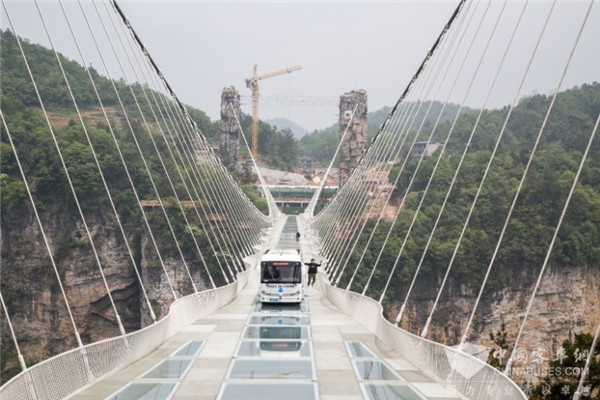 震撼!张家界大峡谷玻璃桥上演无人巴士悬浮魔幻秀
