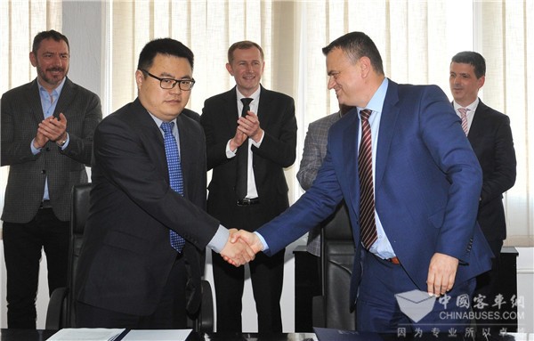 海格海外销售总助张辉与贝市公交总经理Radisa Momčilović签署协议