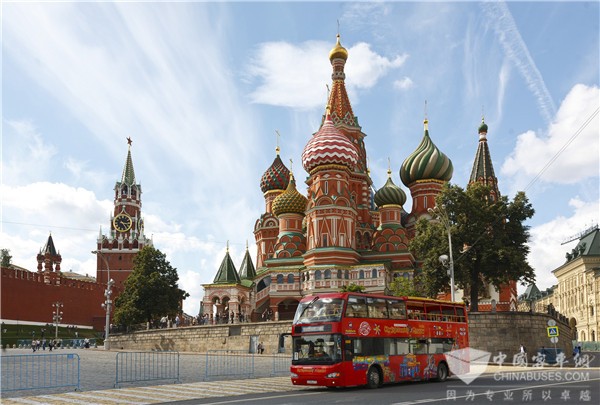2013年1月海格客车双层巴士批量进入俄罗斯,运行在莫斯科红场周边线路,引起极大轰动,稳定的性能,靓丽的外形,服务着来自世界各地的游客,极大地提升了中国客车整体形象。