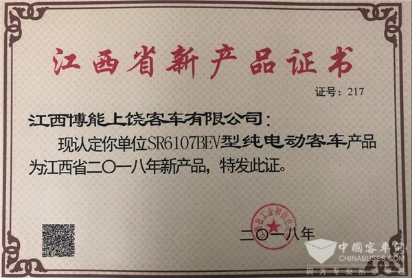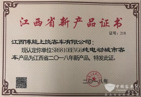 经各地推荐、形式审查、专家评审、网上公示等环节,此次活动共评选出2018年度优秀新产品211项,包含了一等奖30项,二等奖73项,三等奖108项。其中,江西博能上饶客车有限公司的SR6107BEV型纯电动客车被评为2018年度江西省优秀新产品二等奖,SR6107BEV型纯电动客车和SR6810BEVG6型纯电动城市客车被评为江西省2018年新产品。
