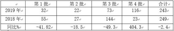 根据2019年前4批次与2018年同期批次目录数据统计: