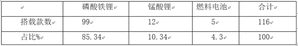 根据统计,从搭载动力电池来看,本批次入选的116款新能源客车,其中99款搭载磷酸铁锂电池,12款搭载锰酸锂电池,5款搭载氢燃料电池: