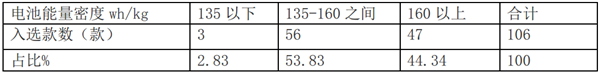 按电池能量密度划分纯电动客车入选车型结构,根据统计,具体如下: