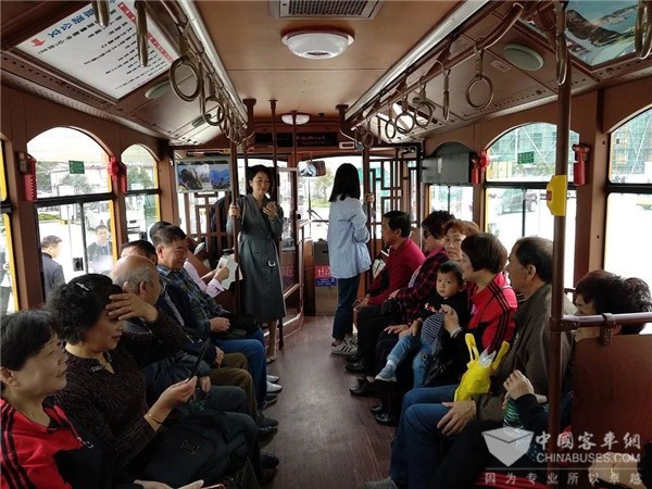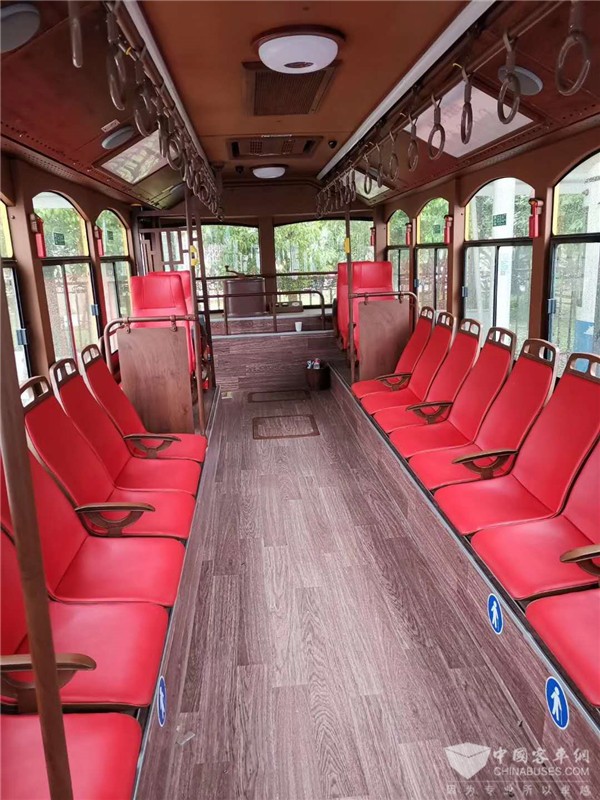 环岛铛铛车复古的造型之下,是环保、智能的内在,该车是零排放、零污染的纯电动公交车,车辆视频监控、GPS定位、智能空调暖风系统等设施一应俱全,让乘客在体验复古之余,又能享受到现代技术带来的舒适乘坐体验。