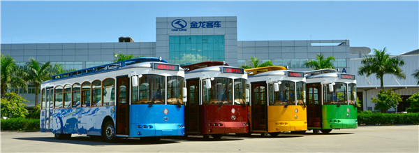 济南市运营的此批金龙铛铛车,分为红、黄、蓝、绿、紫五色。覆盖济南核心区最经典的景点,每日沿济南护城河环绕式运行。