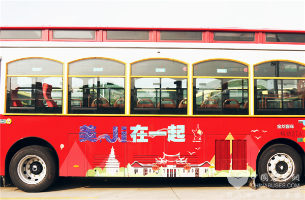 首批投用的4辆仿古“铛铛车”为金龙客车XMQ6860AGBEVM,由温州交运集团联合洞头区交通、旅游等部门为洞头区量身打造。这批吸睛的铛铛车,车身分别为红、黄、蓝、绿,色彩艳丽,极为抢眼。车身图案更是融合了老上海铛铛车元素与闽南人文怀旧韵味,车身上印有“相约吧!DONG TOU”等字眼,以及望海楼、洞头先锋女子民兵连纪念馆等洞头旅游代表性景观,极富视觉冲击力。
