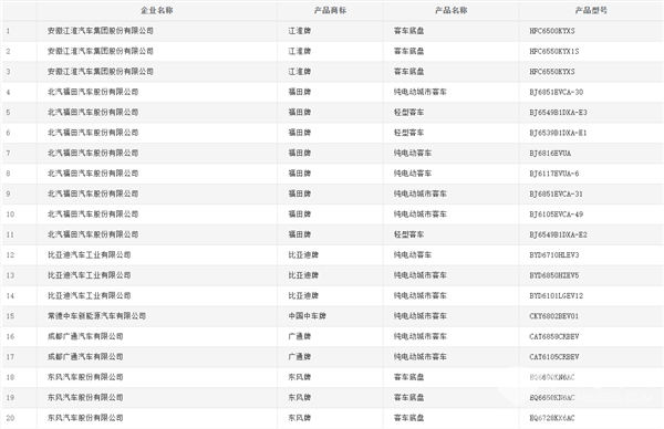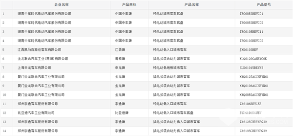值得注意的是,在本批新产品公示中,中车电动共上榜26款客车,其中18款新能源客车(含8款底盘),在本批公示的所有新能源客车中位居首位。申龙客车和东风牌新能源客车紧随其后,分别上榜19款和17款客车产品。