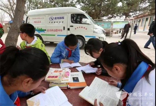 “金龙移动图书馆”是2016年底金龙客车与厦门红十字会联合发起的大型社会公益项目,由金龙客车捐赠图书车,金龙客车与红十字会从社会募集优质图书,随车赠送到偏远乡村和学校,并协同开展关爱行动,带动全社会爱心传递,共同关注偏远地区孩子的阅读问题,帮助解决城乡图书资源严重失衡的社会问题。