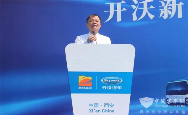 开沃集团董事长黄宏生在致辞中表示:我们相信,在各位领导的关心和支持下,有西安这样的创业福地为依托,今天的开工仪式一定会给我们公司带来全新的发展起点!开沃集团定将积极响应西安市大力发展战略性新兴产业的战略部署,将西安作为集团发展的战略重点,我们会齐心协力、迎难而上、精心规划、倾心建设,将开沃新能源汽车智造基地项目打造成为经典之作、品牌之作、荣誉之作,向各位领导以及西安人民交上一份满意的答卷,为地方经济做出应有的贡献。