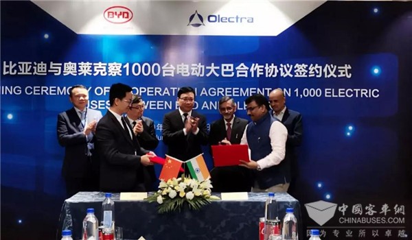 2019年6月7日,印度上市公司奥莱克察与比亚迪签署1000台电动大巴合作协议