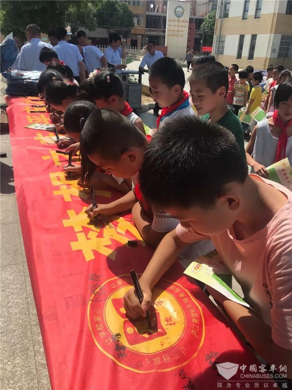 为了进一步提高孩子们的乘坐校车安全意识,增强全体师生的自救、自护能力,安凯联合庐江星梦校车服务有限公司举办了校车安全教育活动,向孩子们耐心讲解交通规则以及乘坐校车的安全知识。