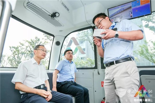 南京市委常委、常务副市长杨学鹏,南京市政府秘书长翁国玖等市领导试乘开沃“蓝鲸号”