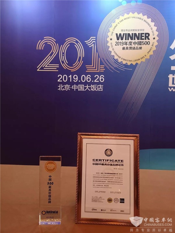 2019年6月26日,由世界品牌实验室主办的世界品牌大会在北京召开。在会上发布的2019年《中国500最具价值品牌》排行榜中,玉柴品牌上升至第102位,以505.69亿元的品牌价值,再次荣登我国内燃机行业和广西企业榜首。