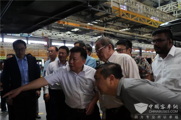 马来西亚代表团一行深入到中车电动新能源客车生产基地进行了参观考察。当得知中车电动客车目前整车销量突破40000台、系统销量120000台套后,马来西亚客人们对中车电动在行业中的地位和影响力表示高度认可。