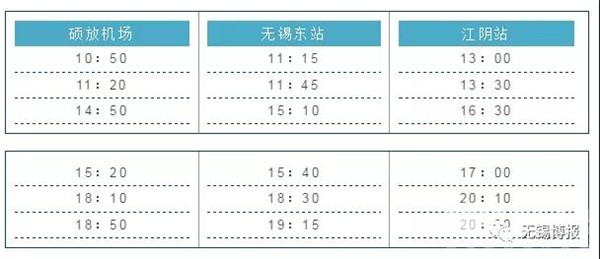 (硕放机场→无锡东站→金城快速路→G2(京沪高速)→立新路→江阴汽车客运站)