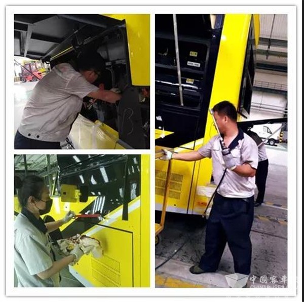 随着哈尔滨公交501台车的逐步下线,从7月13号开始,擦车工作成为制件车间工作的一部分,由各个工段承包,并设专人检查擦车情况,在这三伏天里室外作业,车里温度可比桑拿房,最多一天制件车间承担了20台的擦车任务。周六周日和三装线一样不休息,完成每天安排的擦车数量。不仅刚下线的车由制件车间承担,每天要发运车辆的最后清理工作也由制件车间承包。