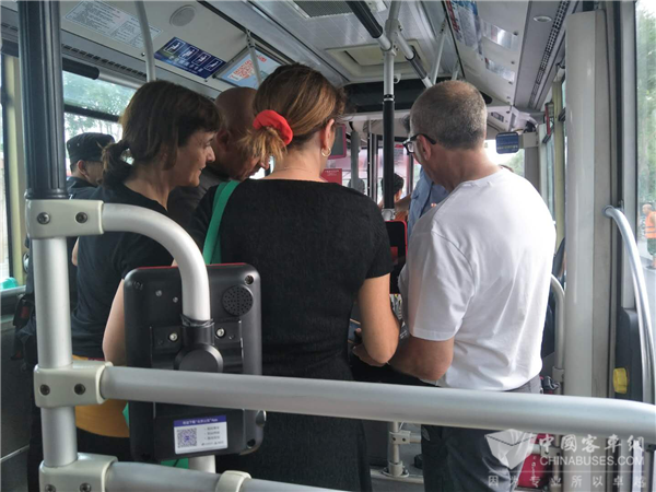 乘坐着欧辉客车,车外闷热潮湿,车内空调舒适凉爽。上车时车上就笔者自己一人,行驶了两站之后开始陆续上人。越是接近天安门景区附近,车上乘客越是爆满。