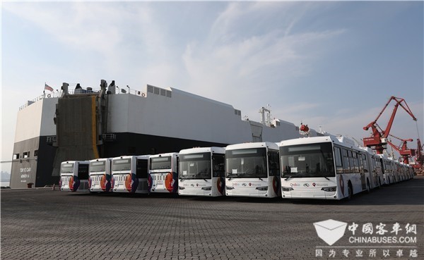 2019年8月7日,金龙客车精心打造的25辆纯电动公路客车装船起航,向智利进发