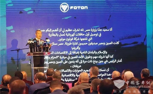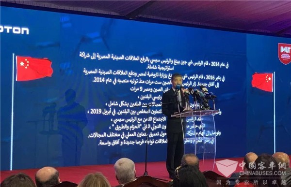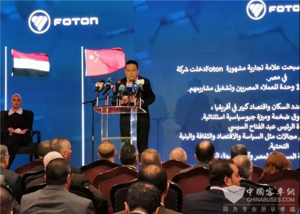 今年4月,在埃及总统塞西参加“一带一路”国际合作高峰论坛期间,埃及政府军工生产部及属地合作方专程考察了福田汽车集团,并在福田汽车集团总部签订福田欧辉纯电动公交采购及属地新能源制造合作项目合作备忘录。中国驻埃及大使廖力强表示,短短几个月时间福田汽车就与埃方实现了首批电动客车的交付,这是双方合作迈出的重要一步,且福田纯电动客车属地生产项目是中国与埃及着眼优势互补、合作共赢的发展大局,在“一带一路”框架内开展合作的成功典范,有利于双方实现共同发展、共同繁荣。