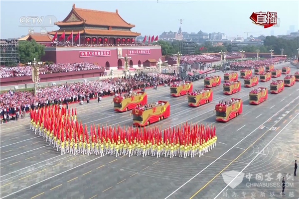 在刚刚过去的“庆祝新中国成立70周年大会”上,欧辉客车更是凭借“国典品质”圆满完成23辆致敬礼宾车、5辆主题彩车和2310辆接驳保障车辆的国典护航重任。