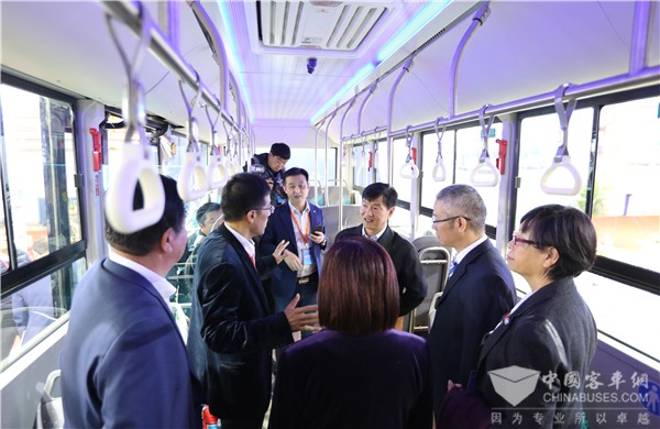 交通运输部副部长刘小明体验展车,金龙客车总经理刘志军陪同