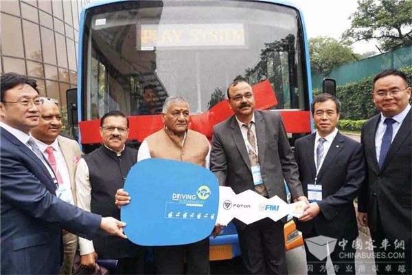 海外市场再突破!直击福田欧辉70辆纯电动客车的印度交车现场