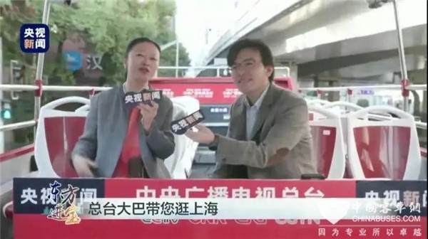 进博会开幕当日,安凯双层敞篷巴士搭乘央视新闻记者梁志玮以及春秋旅游副总裁周卫红行驶在上海街头。与众不同的双层敞篷设计,引来了上海市民以及大量网友的关注。