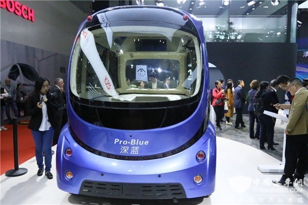 2019年4月16日,苏州金龙海格客车发布L4级量产无人驾驶巴士Pro-Blue“深蓝”。该车应用了海格自主研发的无人驾驶控制器、底盘线控等核心技术,展示了中国商用车在“智能网联”技术方面的最新成就。